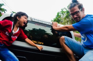 I estavem tant aburrits esperant un bus local tailandés que fins i tot ens haviem assegut sobre les motxilles quan de sobte sento que ens pita un cotxe i s’atura. Em giro perquè estava d’esquenes a la carretera i… no és un cotxe! És la Grassvan!! Flipa!!